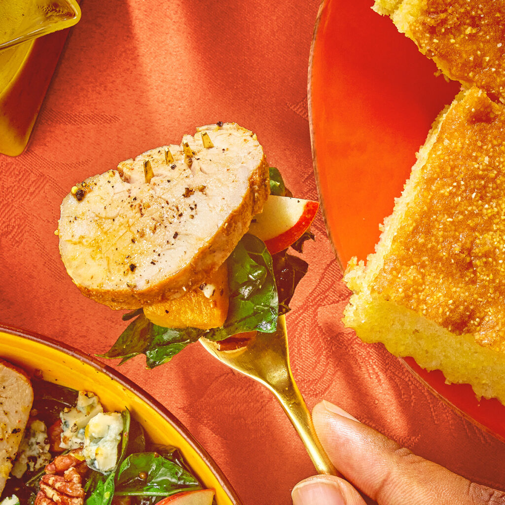 Air-Fried Pork Tenderloin Salad makes mindful eating light work. Tender, Juicy Pork Tenderloin adds a savory balance to crispy fruit and veggies. Make every feast a flex with this satisfyingly guilt-free meal.